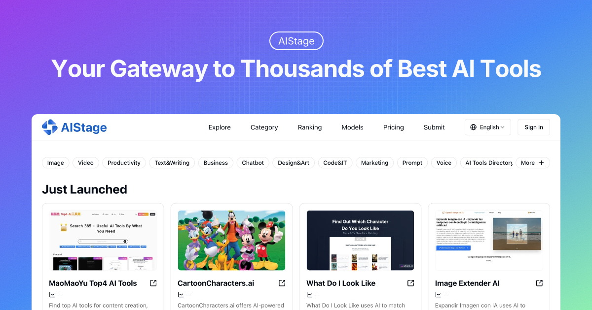 Dive into AIStage and find the best AI tools! With 3000+ tools and 230+ categories, we make it easy to discover the perfect AI for your needs.