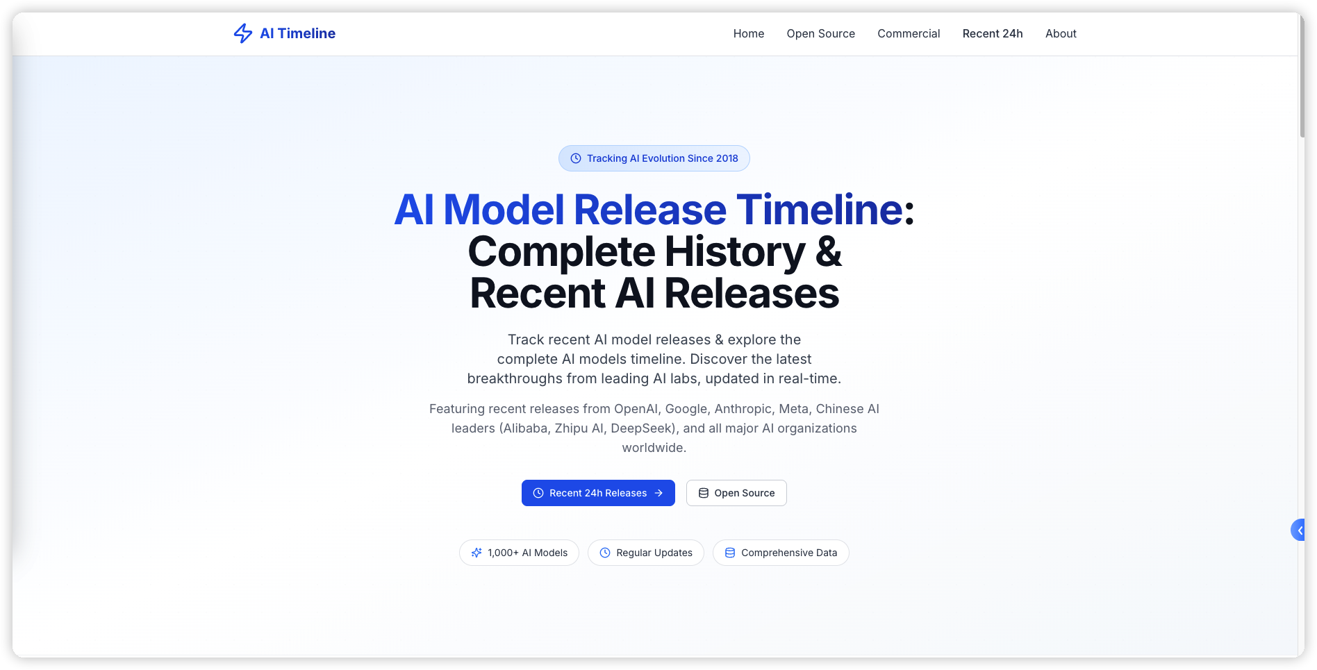 Complete AI model release timeline tracking recent AI model releases, GPT history, and LLM breakthroughs. Discover latest AI models timeline from OpenAI, Google, Anthropic, Meta & Chinese AI development.