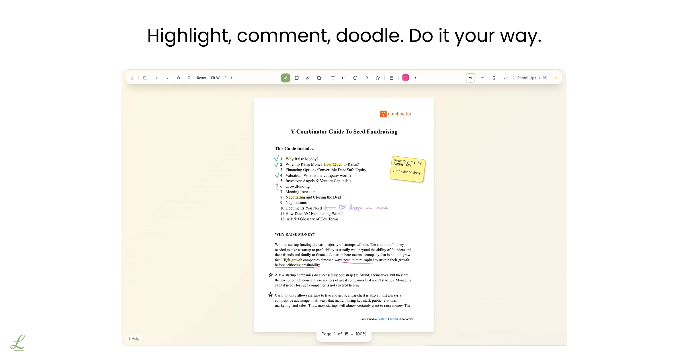 Add drawings and notes to any PDF with LeafPDF. Free browser-based PDF annotation tool that works on any device. No uploads required - your files stay private.