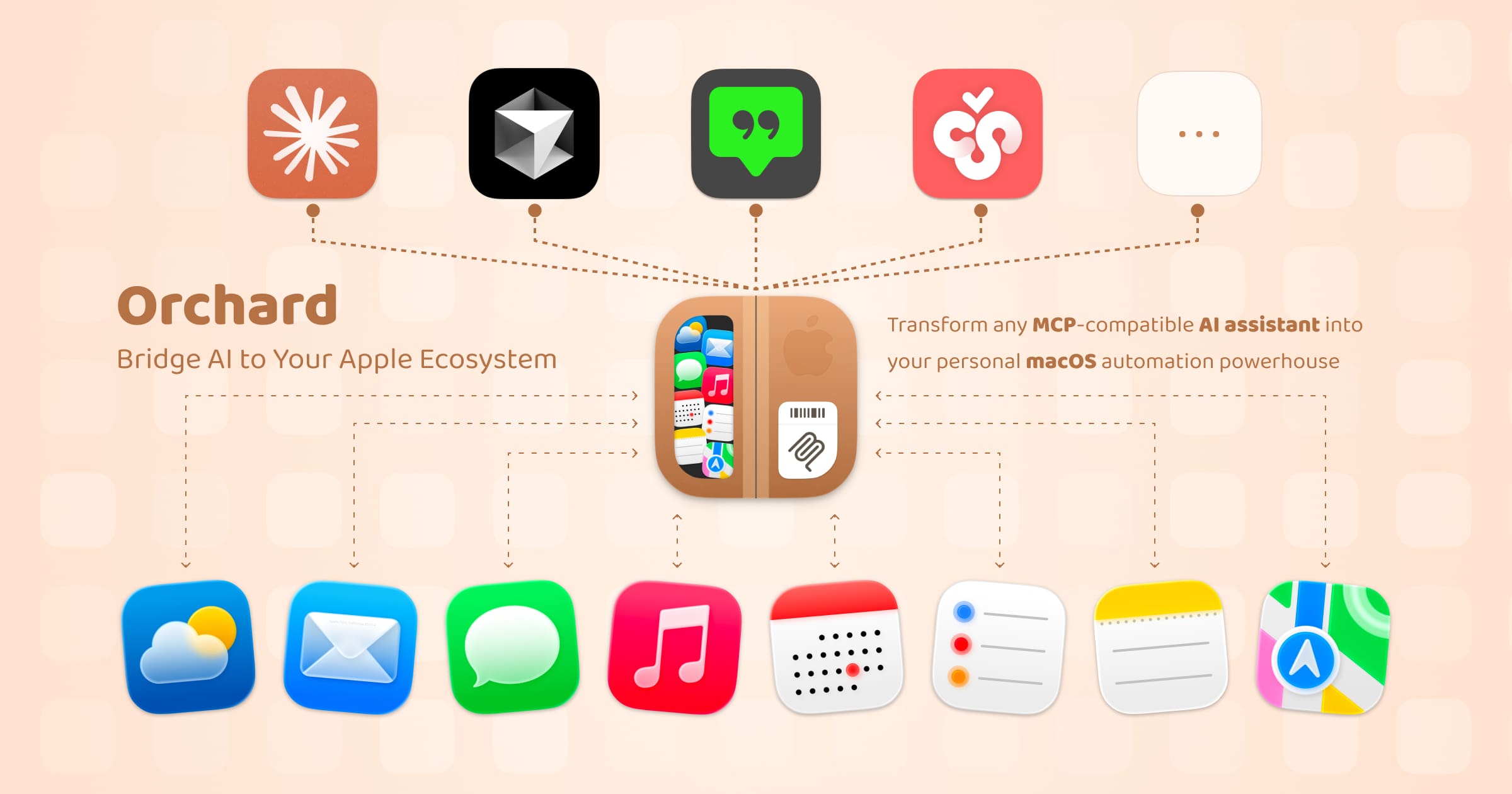 Orchard bridges MCP‑compatible AI assistants with your Apple ecosystem, turning plain language into real actions across native macOS apps—privately, instantly, and locally.