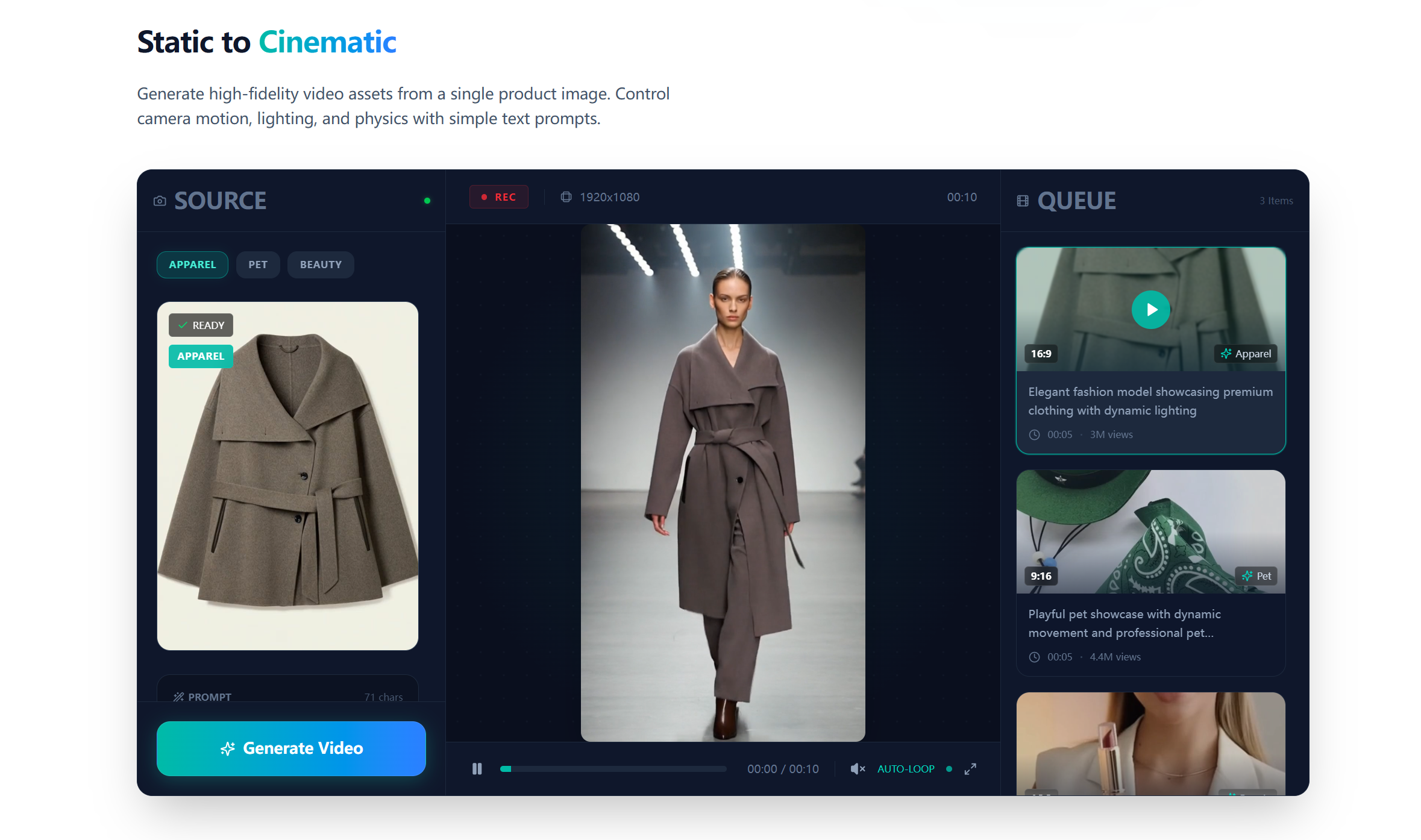 Generate high-quality product images and videos for ecommerce